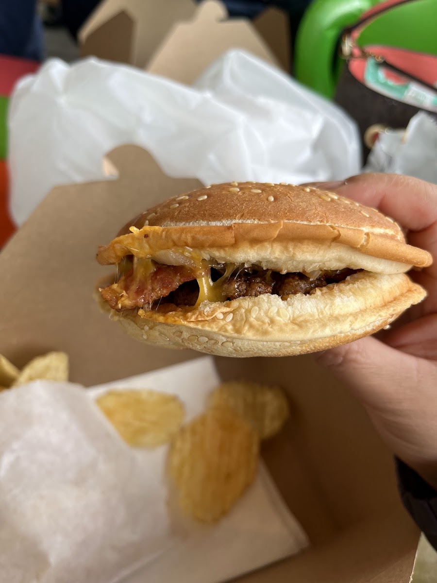 This unique burger spot serves burgers, pizza cones, and philipino street food.. the atmosphere is family oriented kid, friendly, cozy, and fun. I had the bbq ufo burger which is handmade, marinated, and cooked fresh. The bun soaks up the juice from the burger and captures all the flavor. Chicken skewers are authenticly cooked on wood grill and taste very good. Cooked perfectly. The pizza Cone is very tasty and has many traditional and unique combinations available. The customer service, value, and quality of food are all 5 star